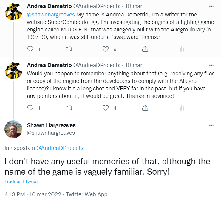 O desenvolvedor e pesquisador Andrea “Jens” Demetrio, conhecido por jogos independentes como Schwarzerblitz, investigou as origens do Mugen e publicou um artigo detalhando o que conseguiu descobrir sobre o assunto.