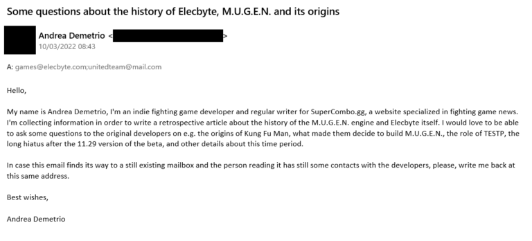 The Crab Games: Vamos começar falando sobre sua investigação. Eu li seu artigo sobre os mistérios da Elecbyte. Todo fã de Mugen tem curiosidade em saber quem criou a engine. Você poderia contar um pouco sobre sua jornada?