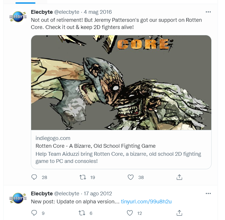 O último tweet no perfil da Elecbyte, anunciando o Rotten Core após um hiato de 4 anos.