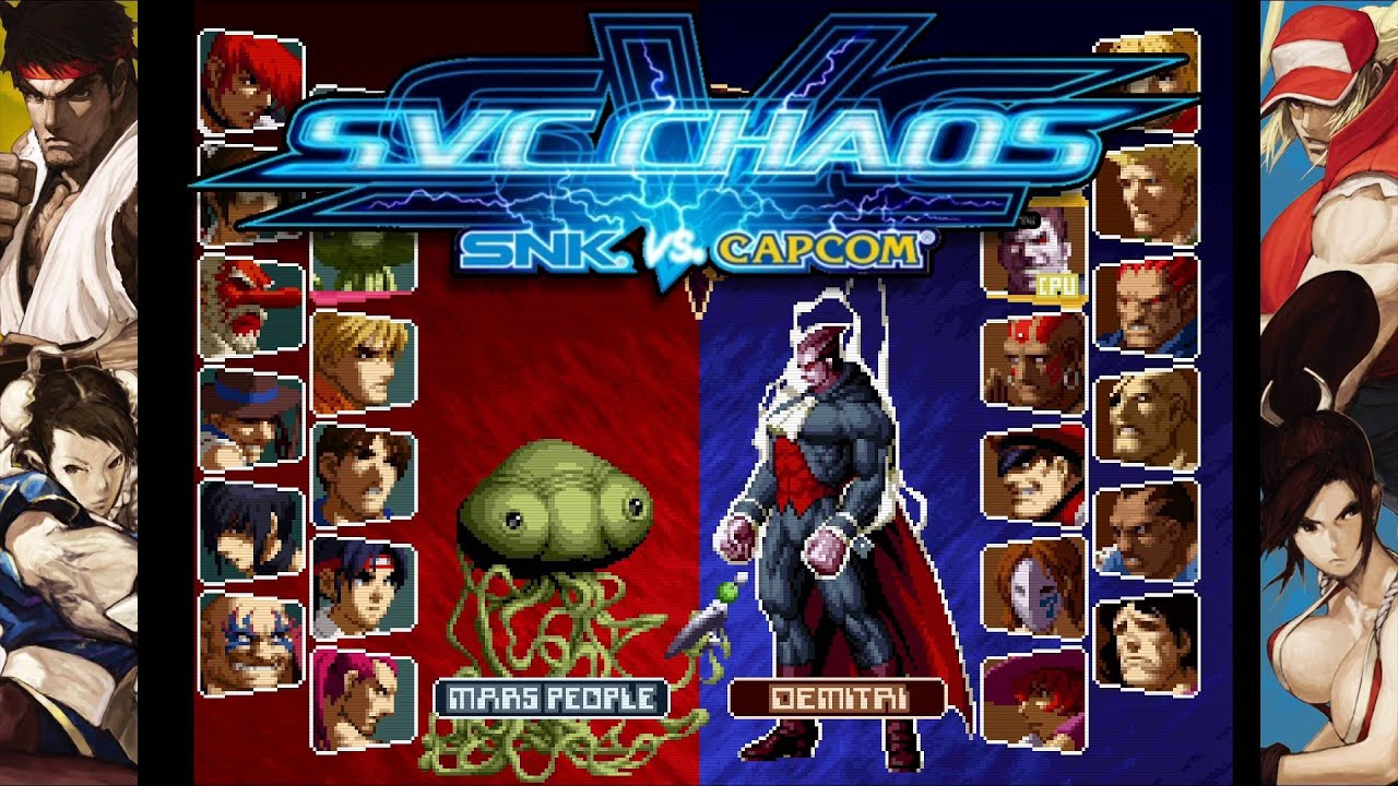SVC Chaos: SNK vs. Capcom é um crossover de luta 2D que coloca personagens icônicos da SNK e da Capcom em intensos combates. Lançado nos arcades, o jogo combina o estilo visual da SNK com o ritmo acelerado das séries Street Fighter e The King of Fighters.