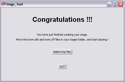 Após processado, a ferramenta cria os arquivos .SFF e .DEF. Basta copiar o .DEF para a pasta Stages do seu Mugen e testá‑lo.